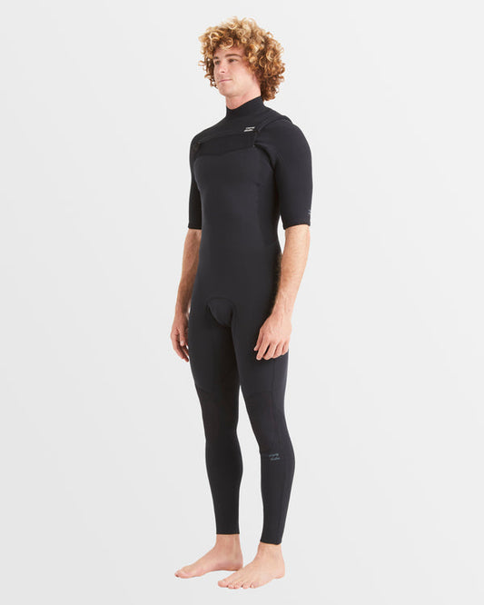Billabong Mens 2/2mm Revo Natural Chest Zip Short Sleeve Steamer