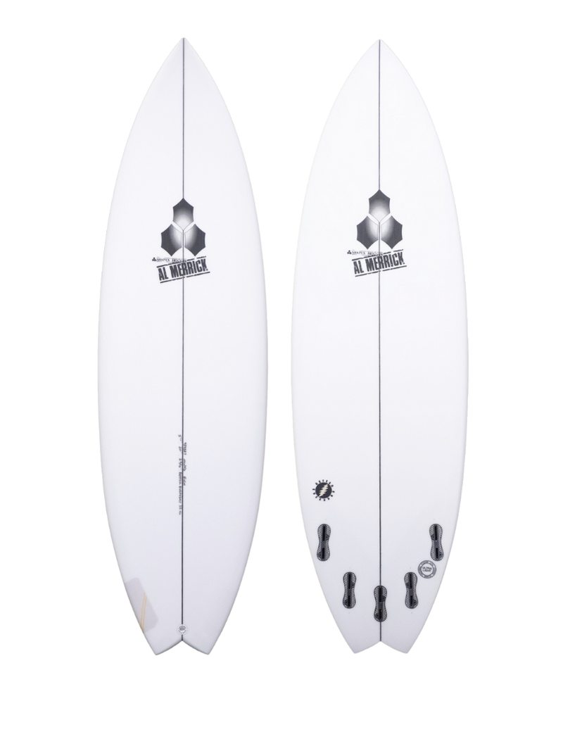 The board comes stock with five fin boxes. Designed as a quad originally Britt also created a special quad set to perfectly compliment the boards characteristics. The fin set combines more upright front fins and raked back fins that give the board the zing and hold to go to the next level.