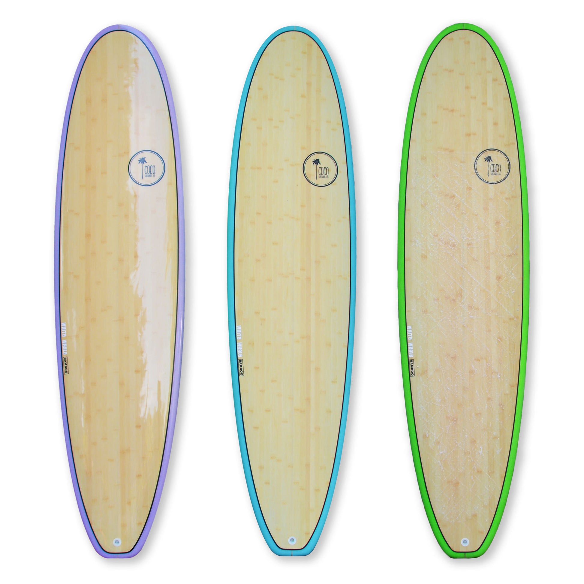 Coco MINI-MAL has a wider outline through the nose, centre and tail. This surfboard has a low to medium rocker profile, which not only makes them very stable, but ideal for smaller, softer surf conditions because they can easily hold speed. Forgiving rails provide easy turning and allows for critical movement.