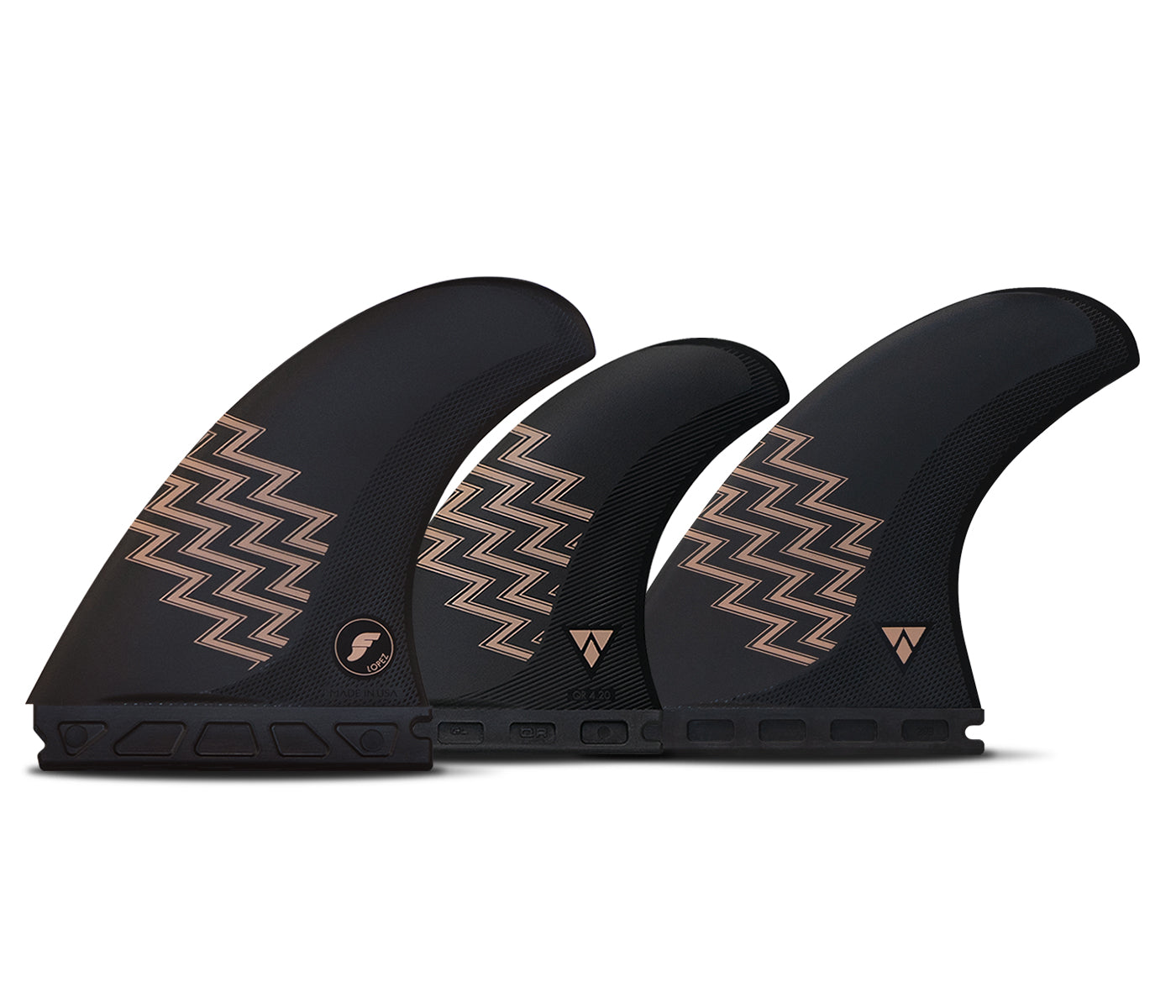 The Alpha line just got a new template, introducing the Gerry Lopez Signature 5-fin. Designed in collaboration with legendary surfer/shaper Gerry Lopez. This is a large sized fin in the Pivot template category. The 5-fin set is designed to be ridden as either a Thruster or Quad set-up, packaged together for more versatility throughout your quiver. The Alpha line is constructed with recycled nets fishing combined with our C6 air-infused carbon.