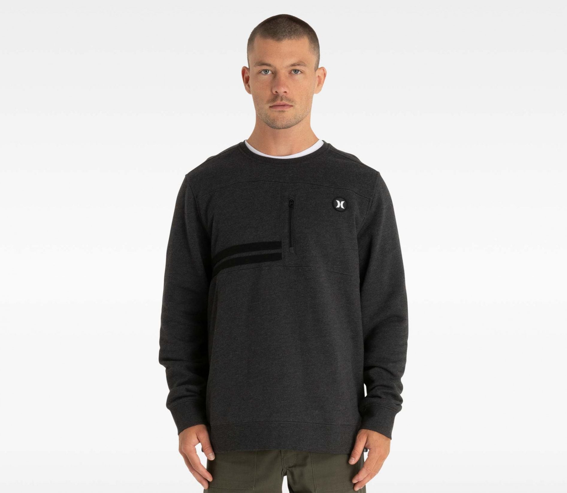 Style up with the Block Party Hurley Mens Fleece Crew for any adventure. Made with a pocket at left chest with vislon zipper and branded puller.