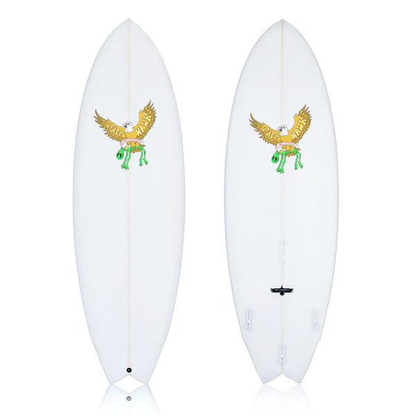 Joel Fitz worked with surfer/artist Ozzie Wright to create this outrageously fun surfboard, perfect for surfers looking for an exciting twin with a difference, ready to make the most of small punchy beach breaks or 3 - 5 feet perfection.