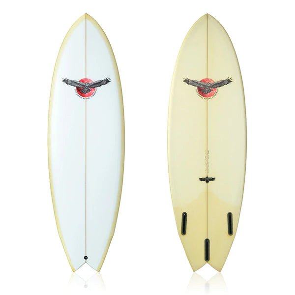 The Space Hawk by Joel Fitzgerald is a classic TWIN FIN surfboard that holds single to double barrel concave plus a little extra foam through the nose to pick up waves fast. Designed with an aggressive rail foil through the tail and a pulled in wing swallowtail, the Space Hawk also manoeuvres quickly and easily while surfing the face of the wave at high speeds.